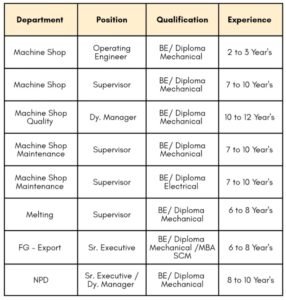 Job Location :- Talegaon, Maharashtra